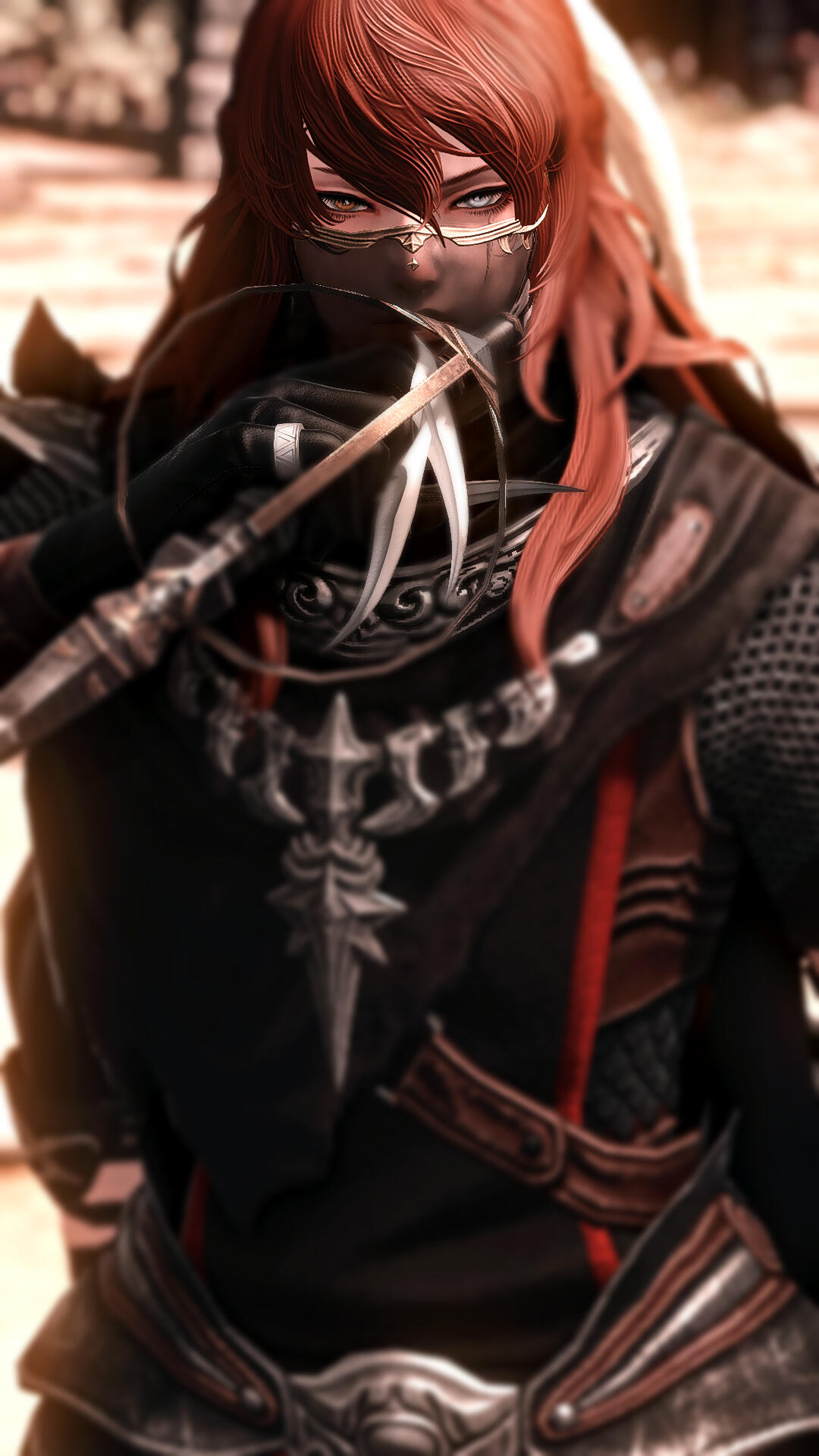 ✦. GLAMOURS — Whether you meet with 'Nine' or 'Tis' or whichever one of his other identities and aliases, one thing that some people well-versed in magicks might observe are the faint traces of glamours on his person. Powerful ones at that. Made specifically for secrecy that no normal person could notice.✦. GLOVED HANDS — No matter the occassion, Nine is always wearing gloves (and even clothes) that hide most of his skin.✦. MASKED MYSTERY — Not one person can confidently put a face to the name 'Nine Heavens'. All of his jobs are done under the secrecy of a mask, and if it can be helped, a proxy would stand in to do his dealings, never once mentioning his name or his location. He may even glamour himself to appear like a different person. Perhaps you may have already met Nine under a different guise and you may never have known.✦. VETERAN — His stance tells the story of a skilled fighter, wielding two daggers as his weapon of choice. Nine is brutal, calculating, and flows like the sands that sweep the deserts of Ivalice when he draws his blades. Most would be hard pressed when they make him their opponent, or enemy. Whether your intentions are to spar or to take his head, Nine will be a formidable foe of his own right.✦. SYMBOLISM AND ASSOCIATION — Despite his alias being Nine Heavens, he is often associated with a symbol of a dagger among roses. In recent times, medallions, tokens, and even cards with its image can be found on the bodies of people unfortunate enough to meet their demise, or in places that would soon be stolen from. Whether or not it has anything to do with Nine himself, who can say.